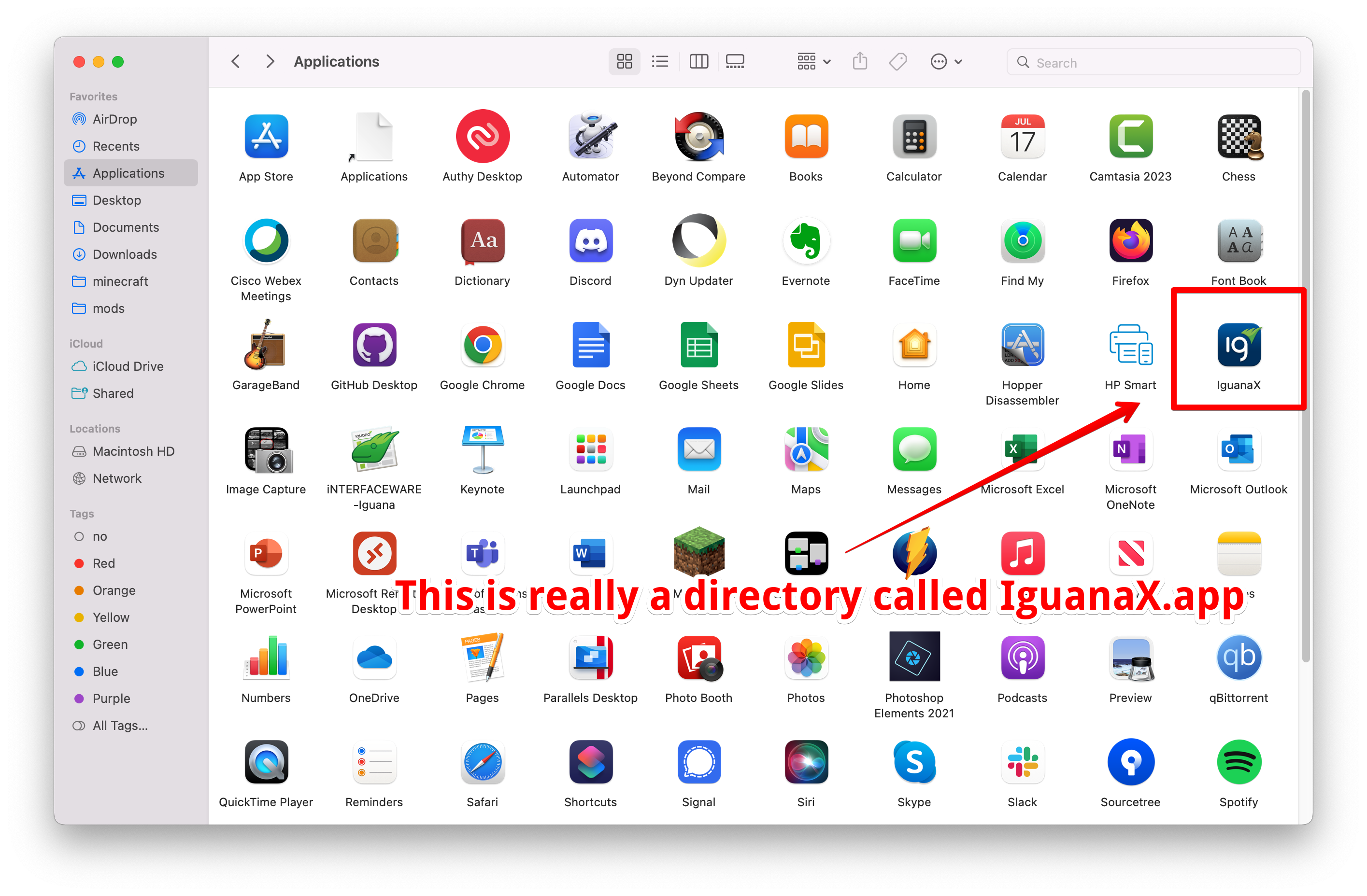 On MacOS when you see a pretty application icon in that folder, it's actually a hidden directory called an application bundle. For Iguana, the bundle is called IguanaX.app.