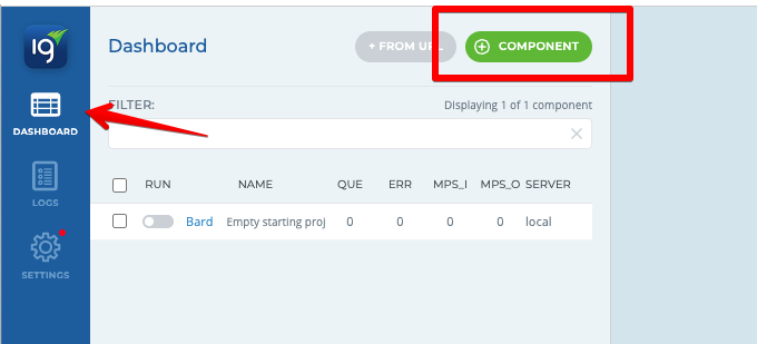 STEP 1: From the dashboard of IguanaX, click on + Component