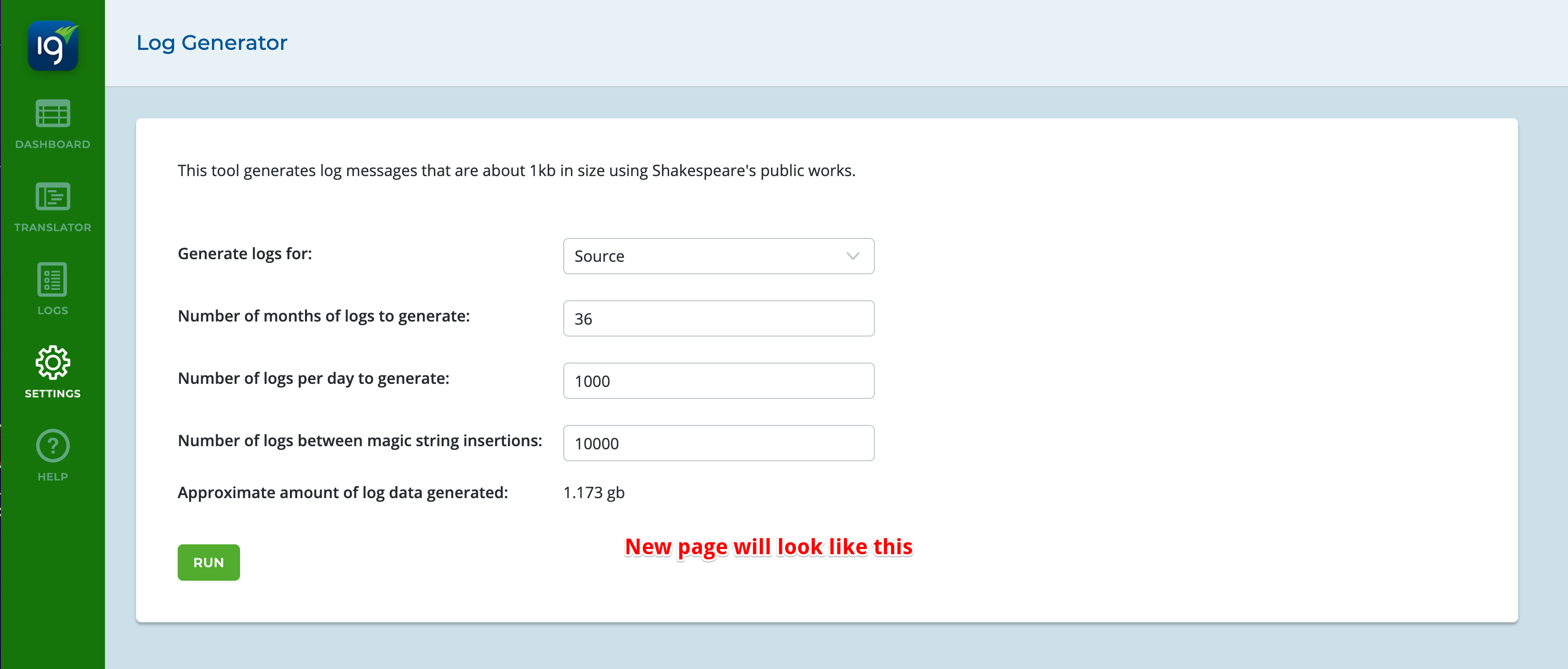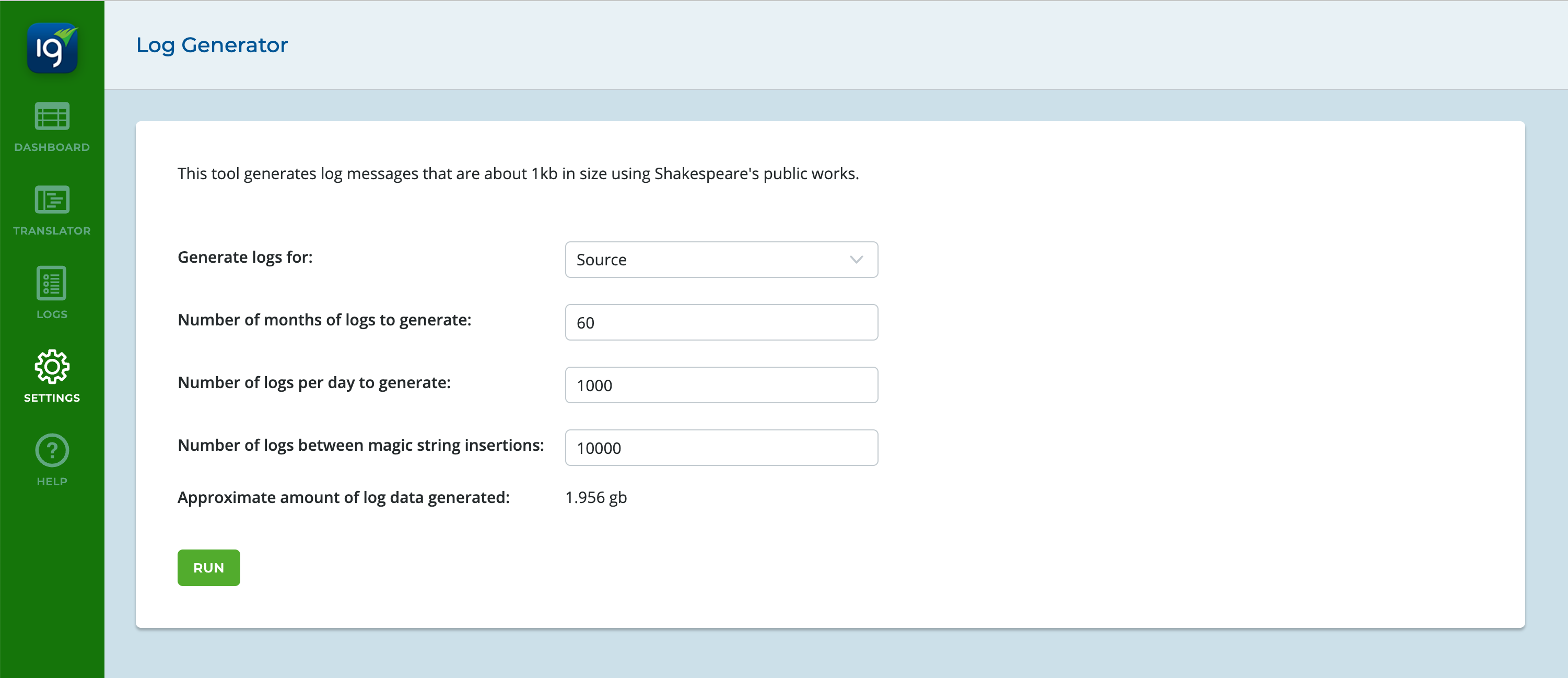 Click Run and wait for the log generation to finish