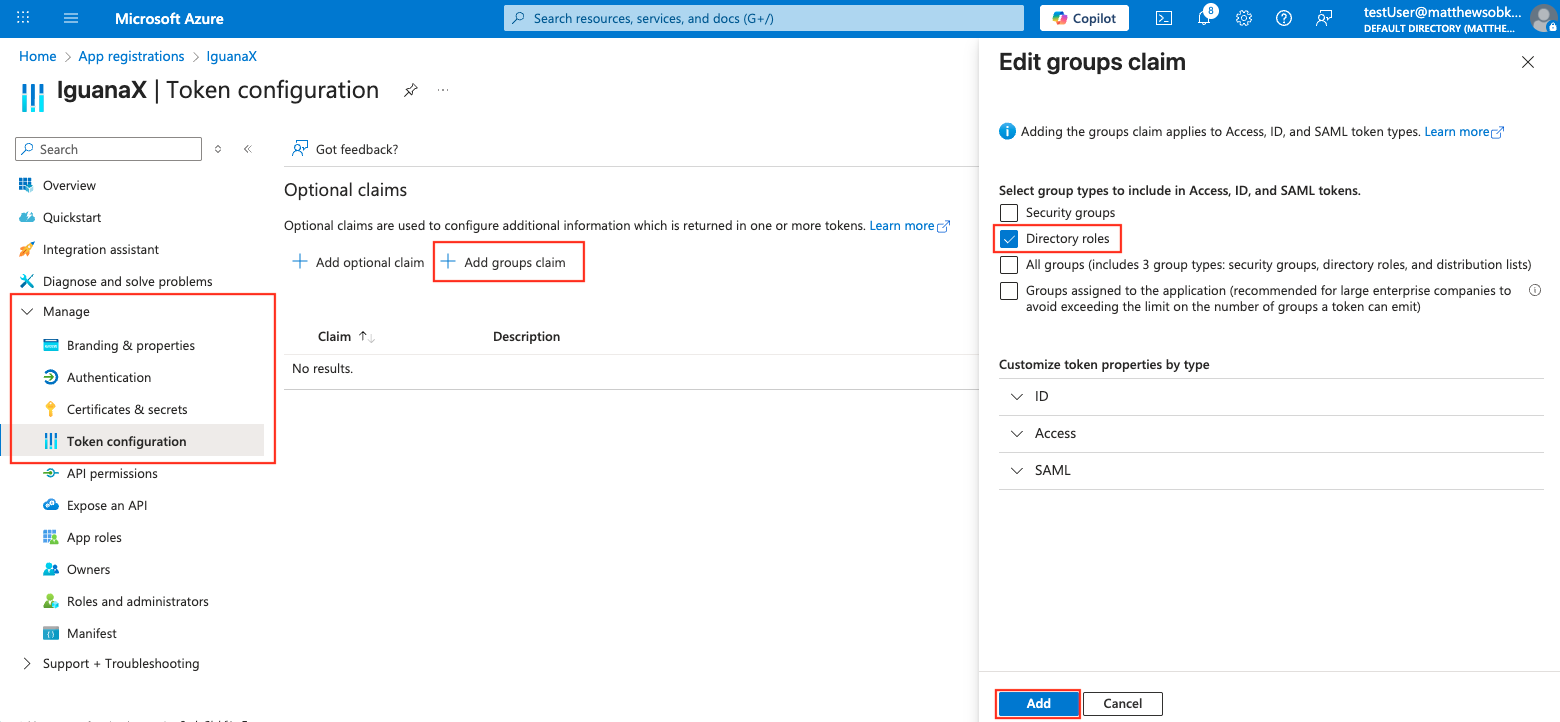 In the Edit groups claim panel, select Directory roles. Click Add.