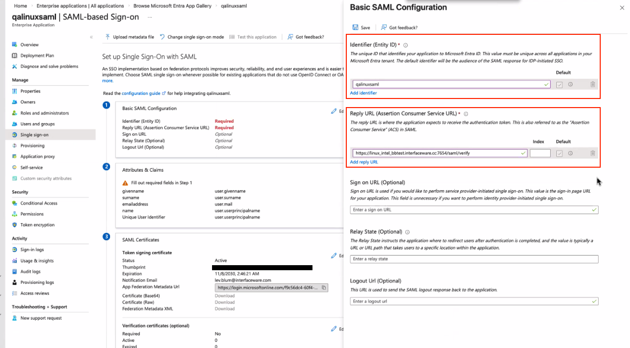 Note: To configure SAML settings in Azure, you must have appropriate user-level permissions within your organization's Azure Active Directory (AAD), typically an administrator role.