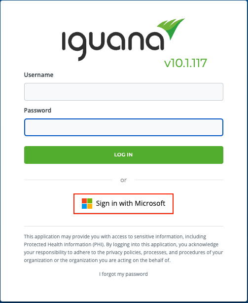 Log out of IguanaX. On the login page, you should now see “ Sign in with Microsoft” as an authentication option.