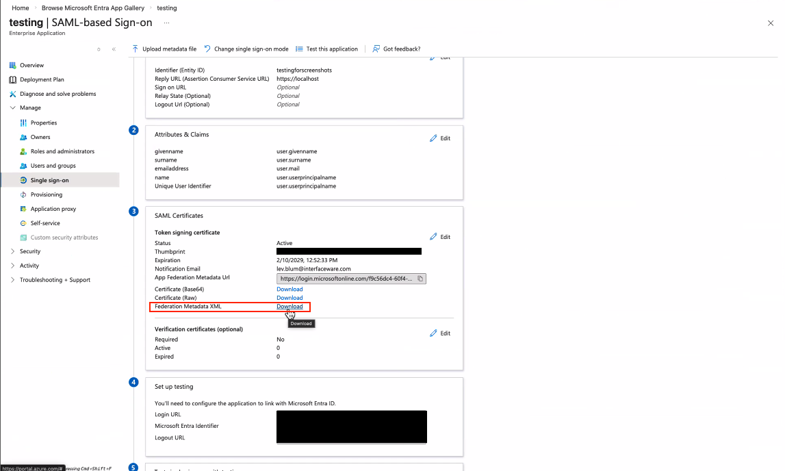 In section 3, select the download button for “Federation Metadata XML”. This file will be used later during the IguanaX configuration: