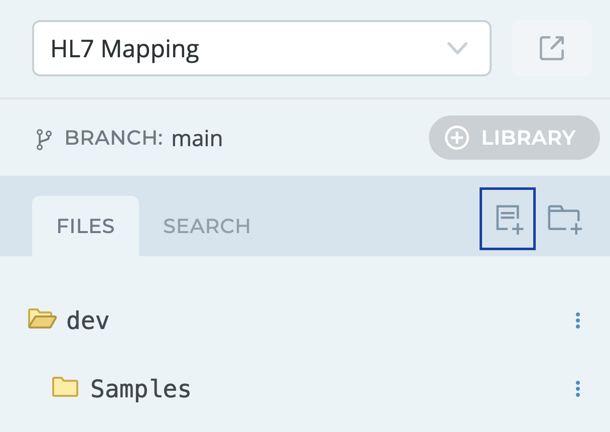 In the Project Tree, click the Create a File icon to create or upload an existing file