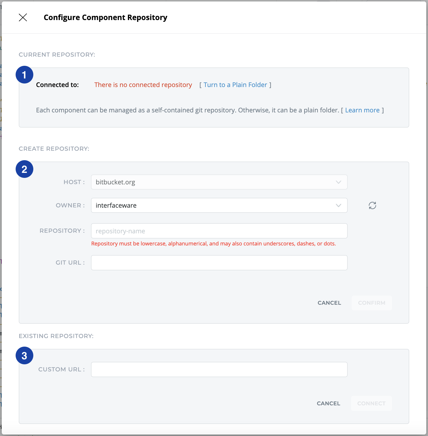 3. Configure the component to connect to an existing Git repository