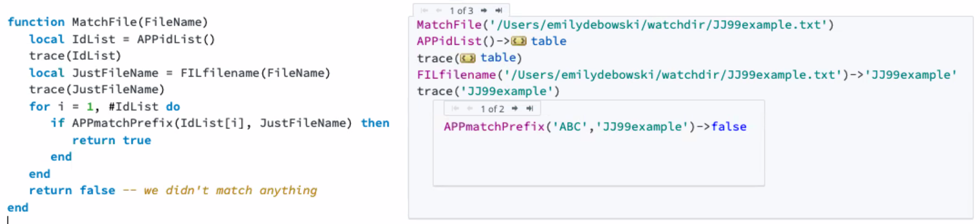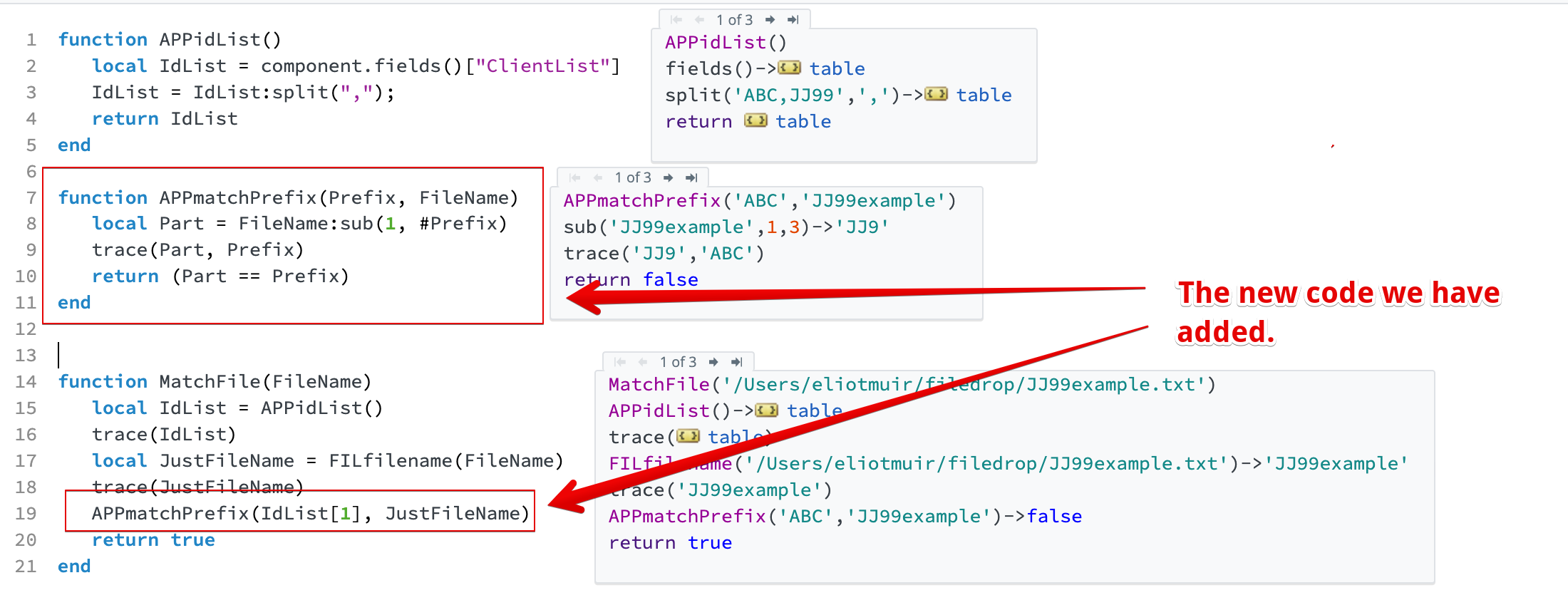 Create a third function, APPmatchPrefix, to determine if the filename matches the prefix. You can copy the code below: