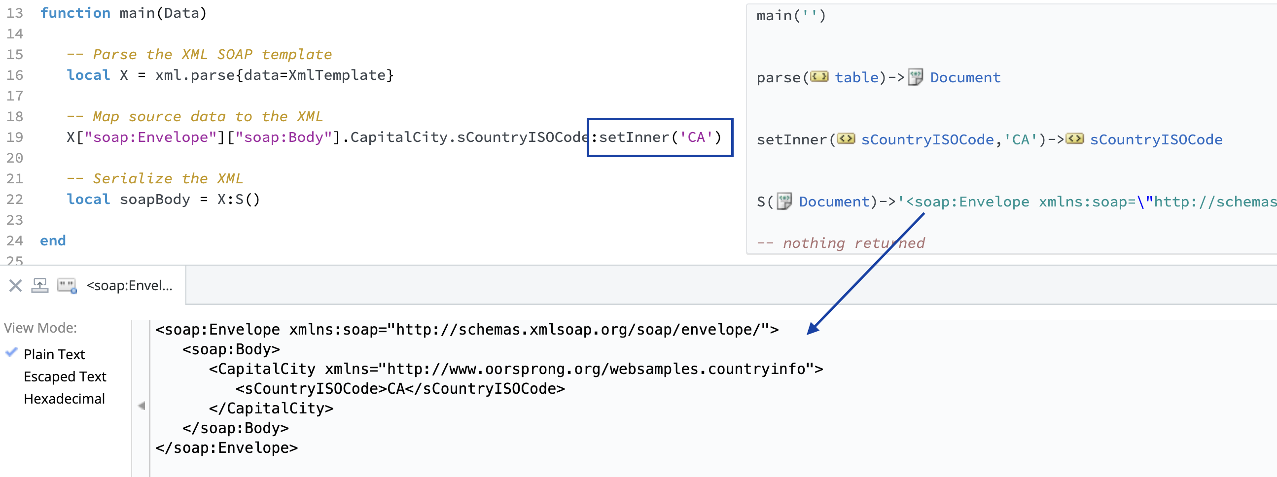 X["soap:Envelope"]["soap:Body"].CapitalCity.sCountryISOCode:setInner('CA')