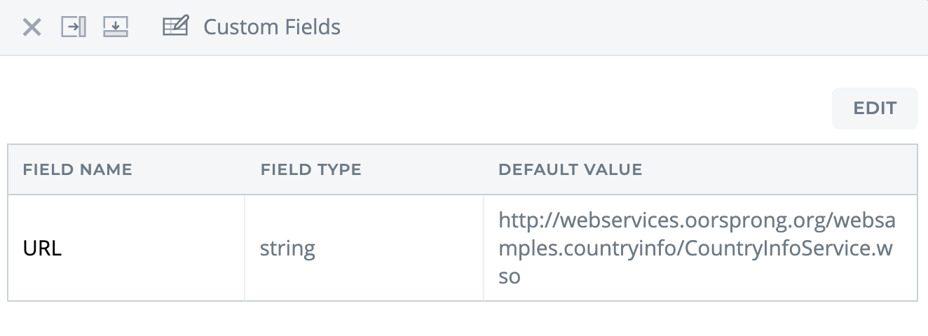 urlof the SOAP web service. Stored in your custom fieldconfigvariable. -
