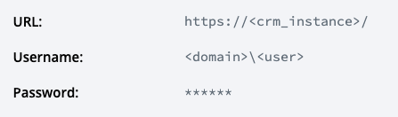 Username | Username for the CRM user account Iguana will authenticate with | |