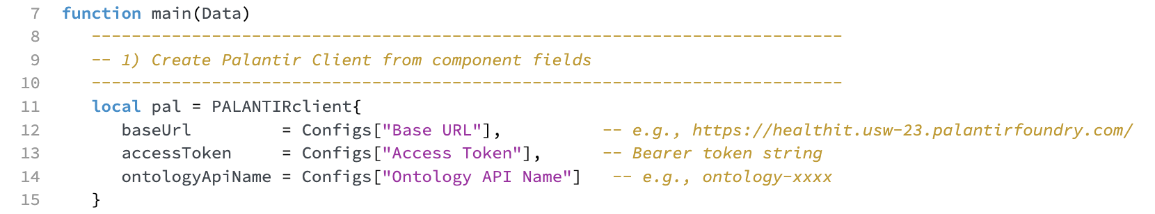 One: Create a Palantir object using the PALANTIRclient constructor