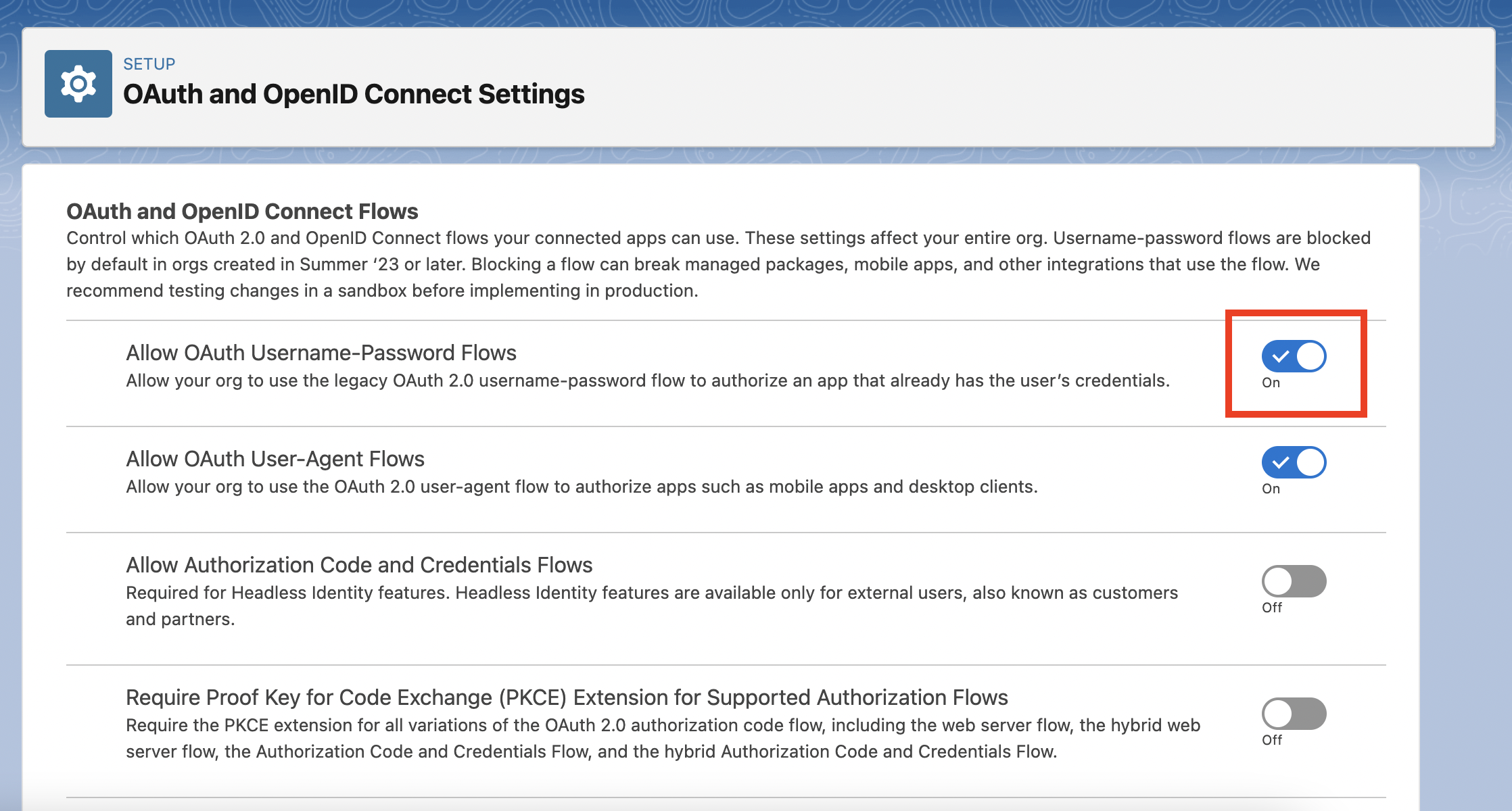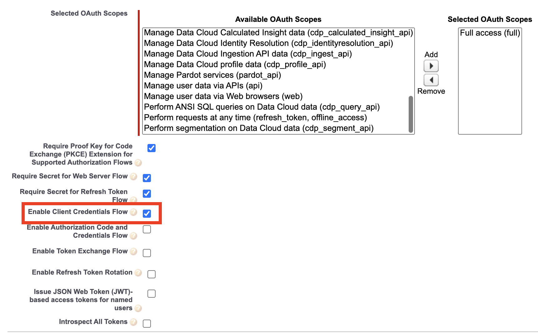 Enable Client Credentials Flow(the Salesforce Adapter uses this OAuth flow)