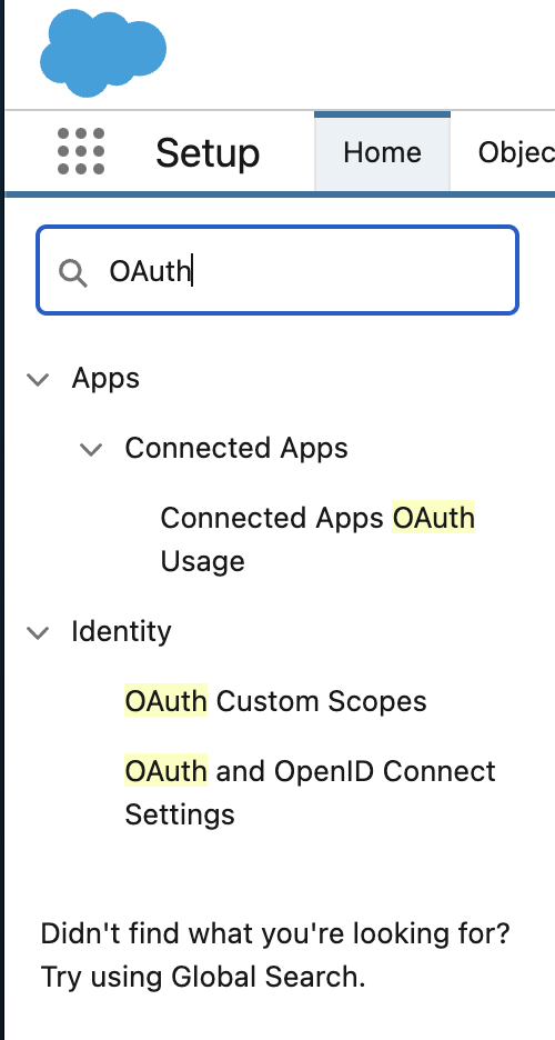 Once you've logged in, go to Setup and use Quick find to navigate to: OAuth and OpenID Connect Settings