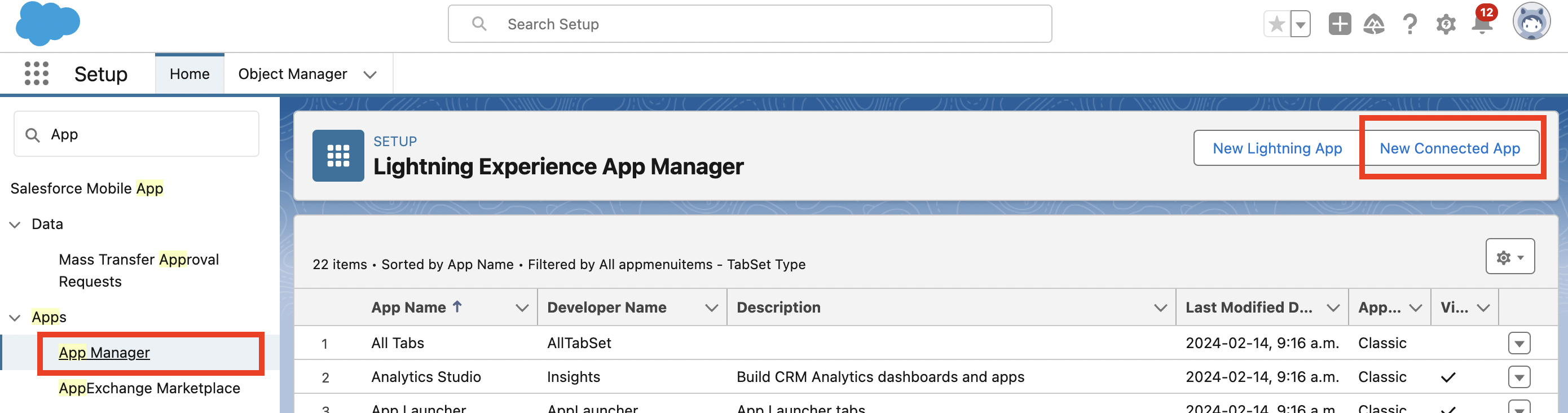 Go to App > App Manager and click New Connected App.