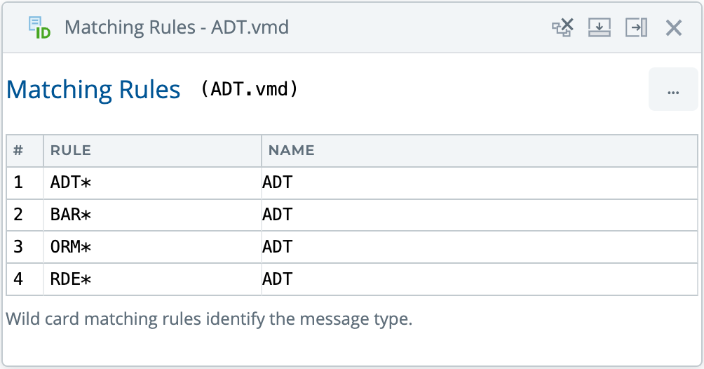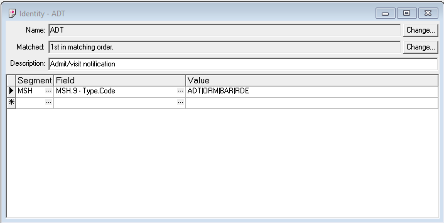 The first rule says any message which starts with “ADT” in the MSH.9 field (i.e. ADT^A04) will be identified as an ADT message. The second does the same but matches MSH.9 fields that begin with “BAR” and so on.