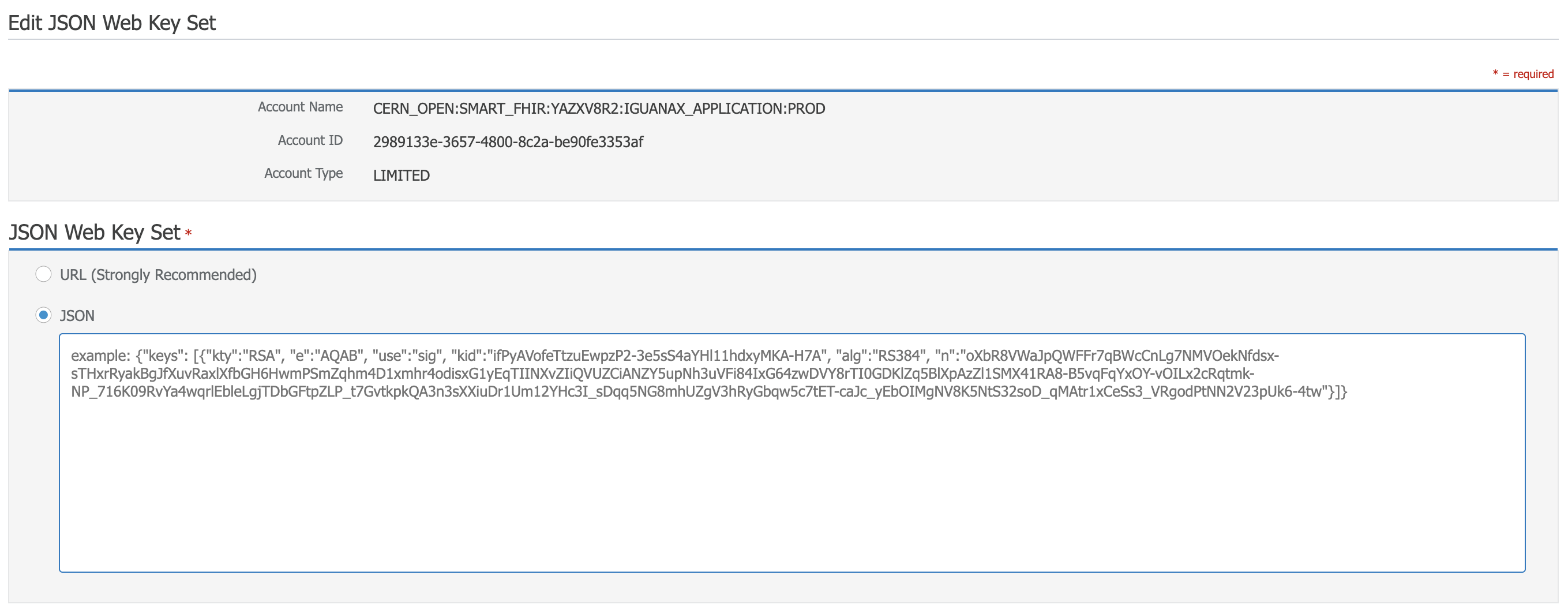 Under JSON Web Key Set, click on edit, then add in your JWKS.
