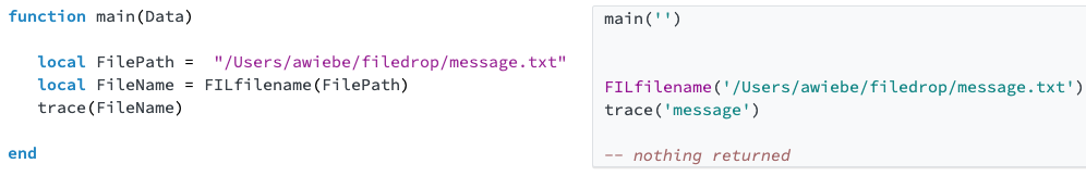 Applying the same foundational concepts, the FILfilename function uses lua pattern matching to extract the filename from the full filepath.