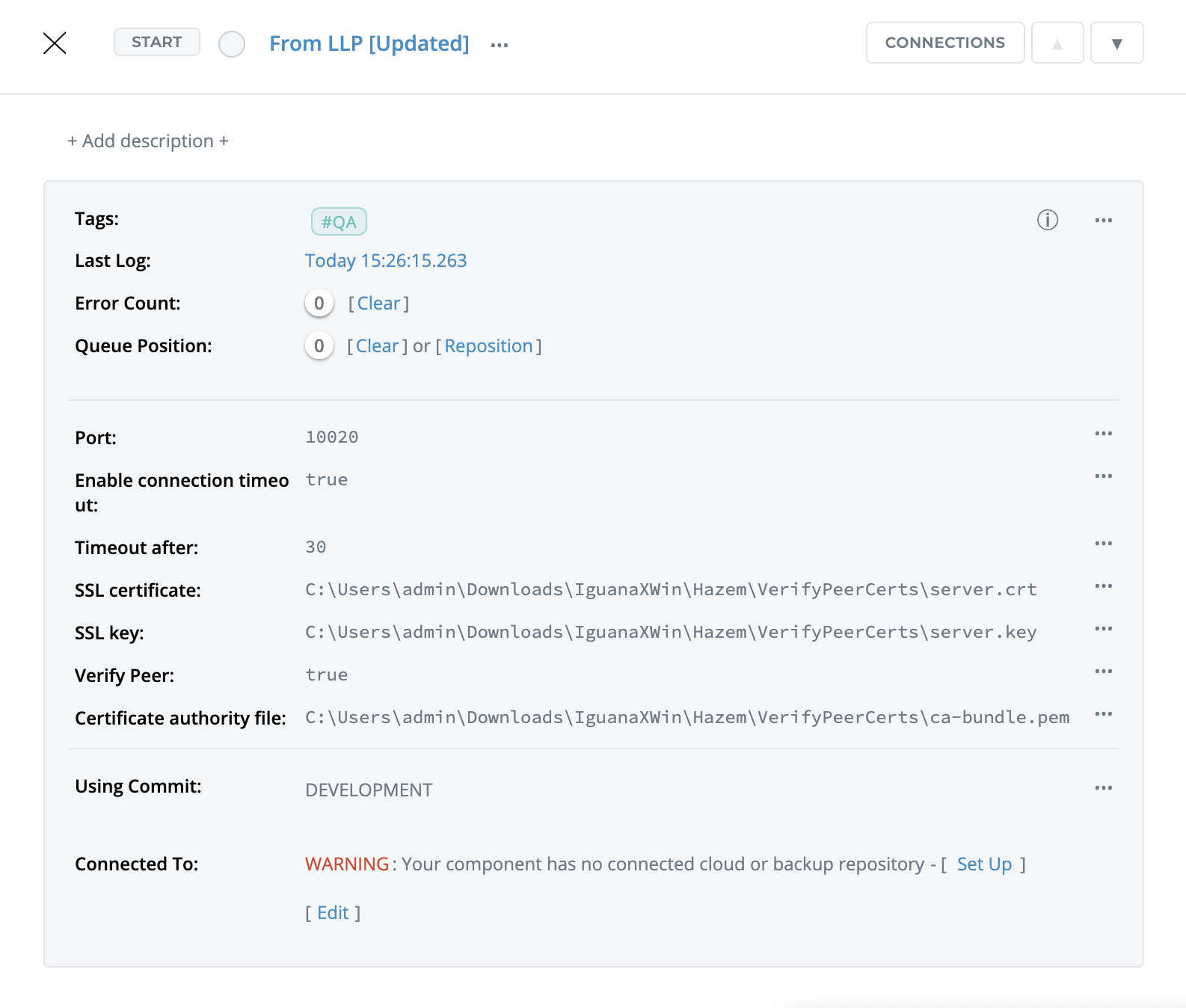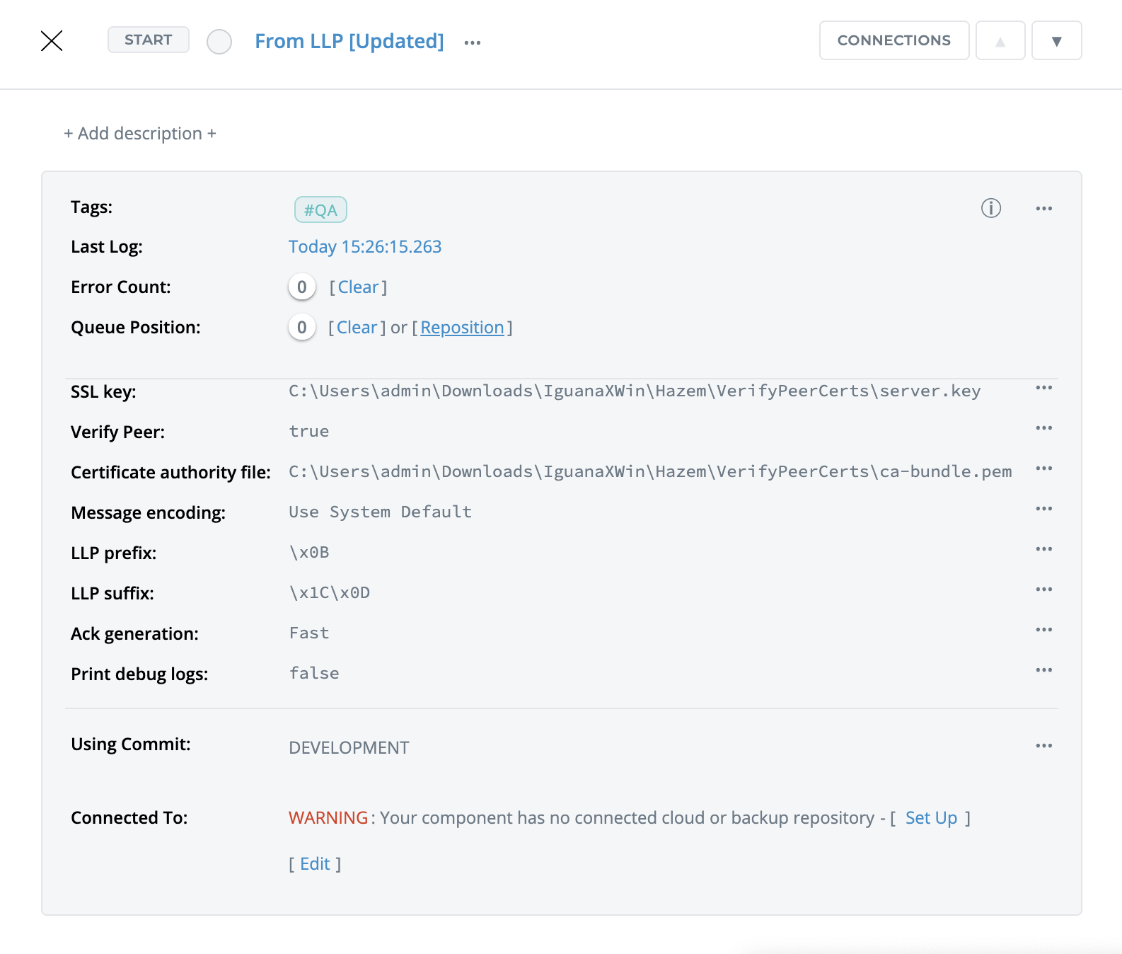 STEP 3: Start the component and verify data is being received and ACKs are being sent