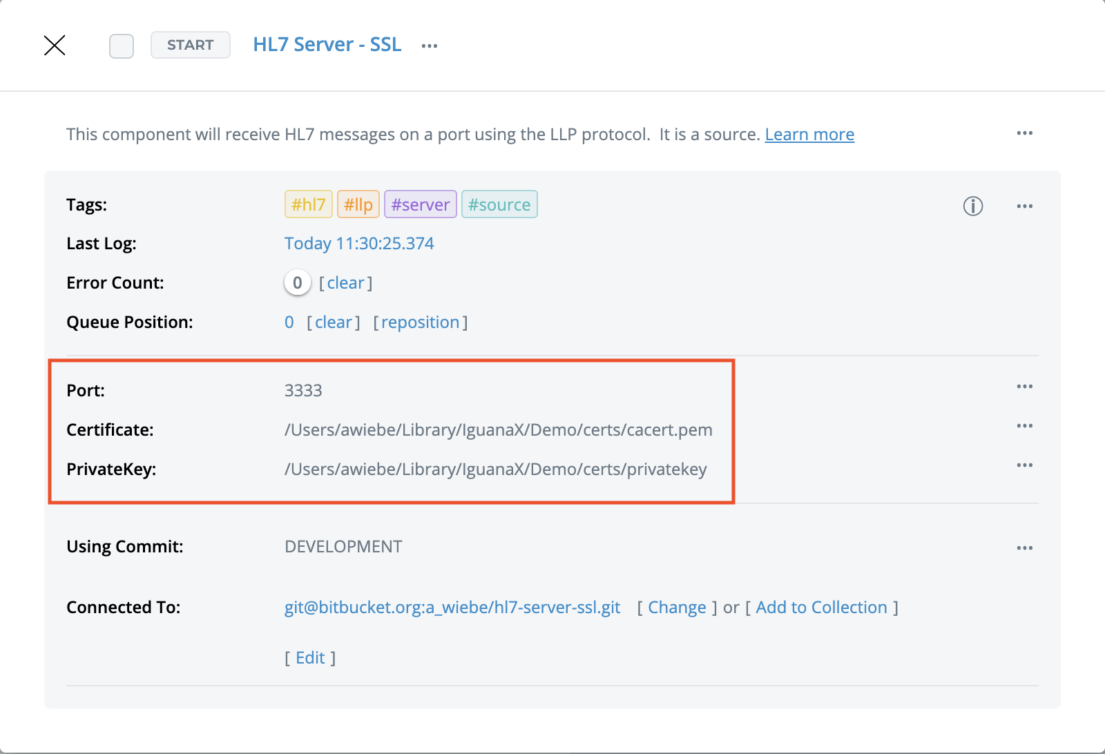 Your HL7 Server component will now use SSL to secure your traffic. Commit your changes and you're all done!