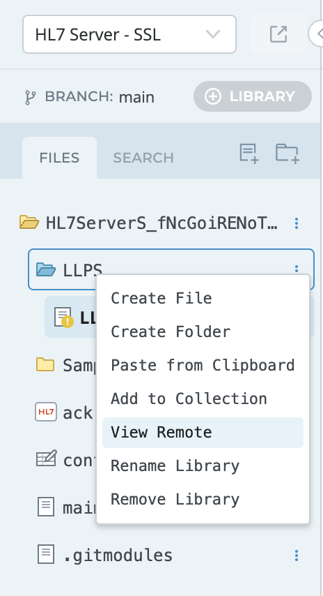 - Click View Remote on the LLPS Library using the tooltip dropdown