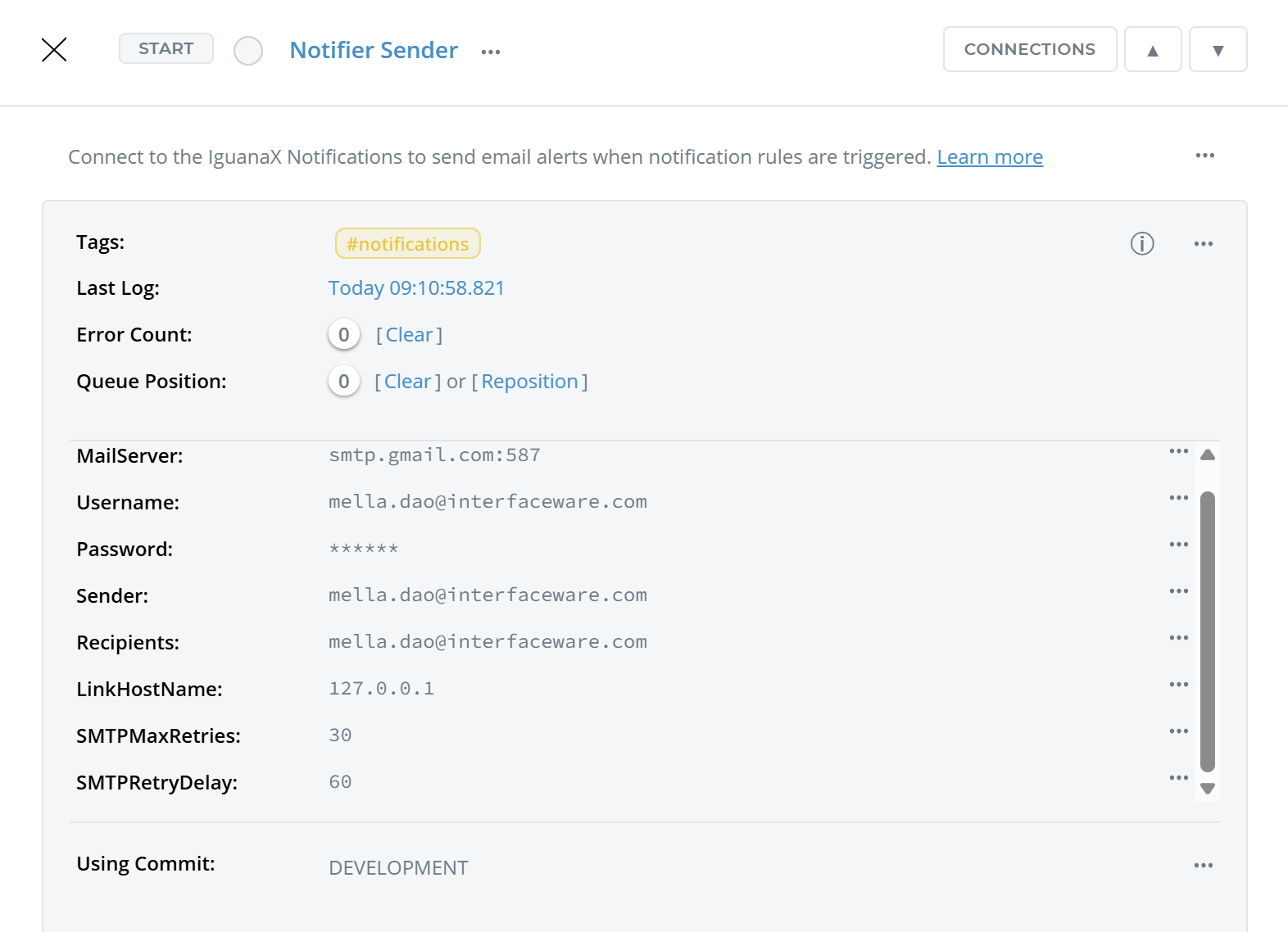 STEP 3: Start the component and view the notifications in your email or preferred destination