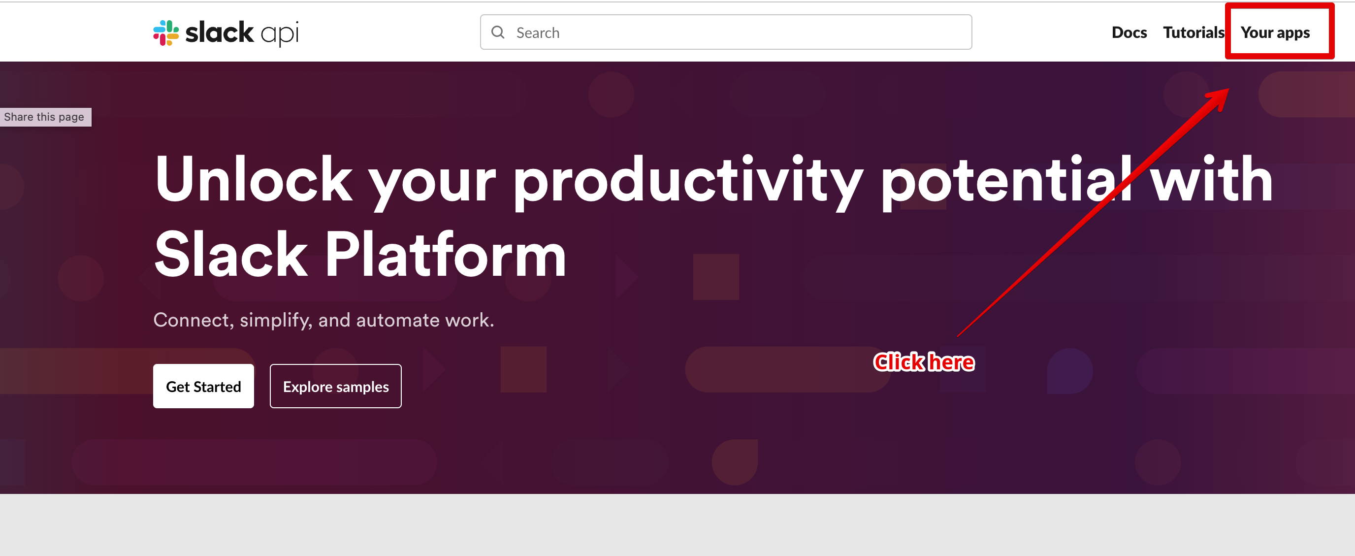 Start by going to https://api.slack.com/ - make sure you are signed in and then click on Create App