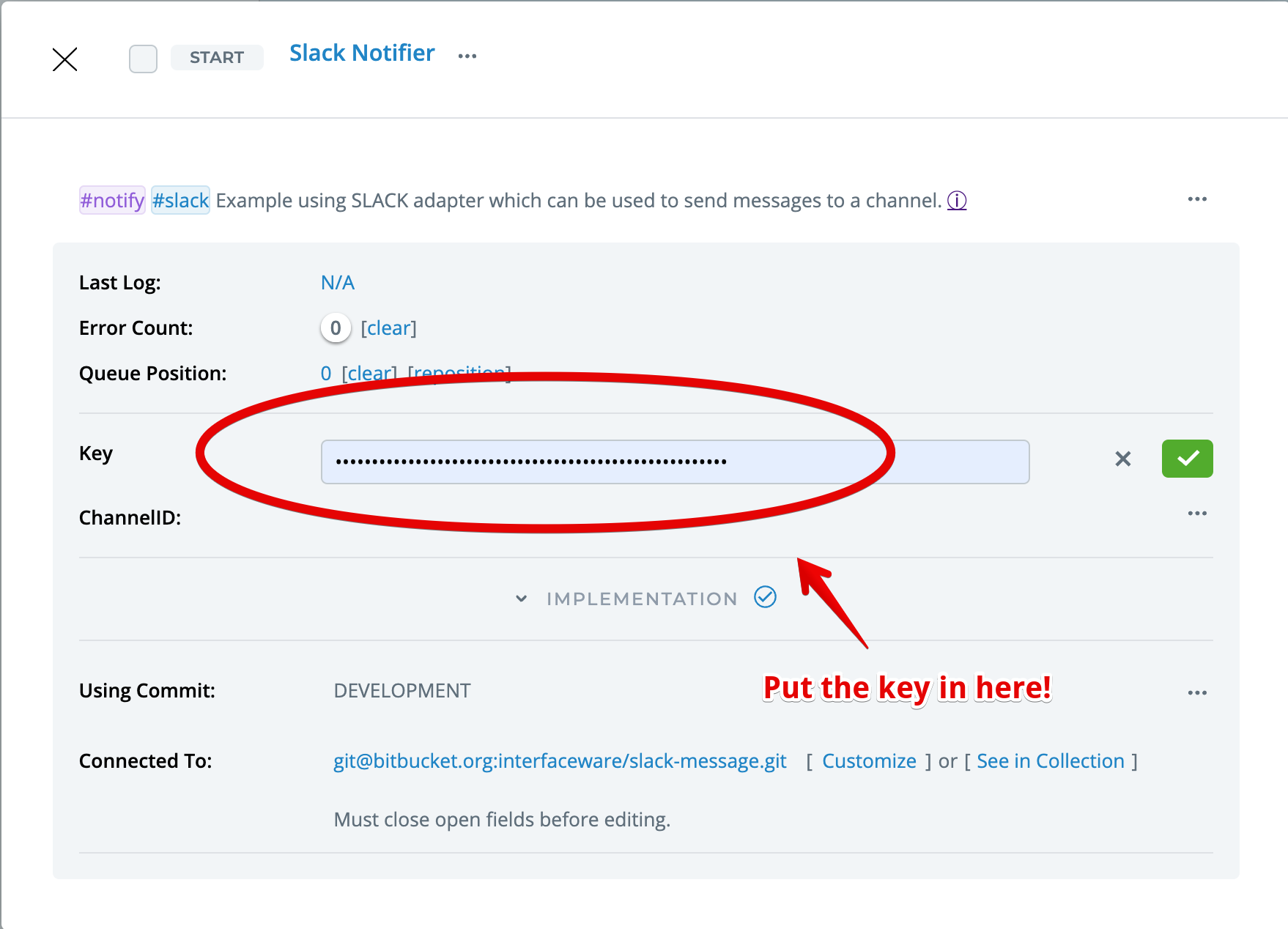 Copy paste it into the Key (see Custom Fields ) for the Slack Notifier component: