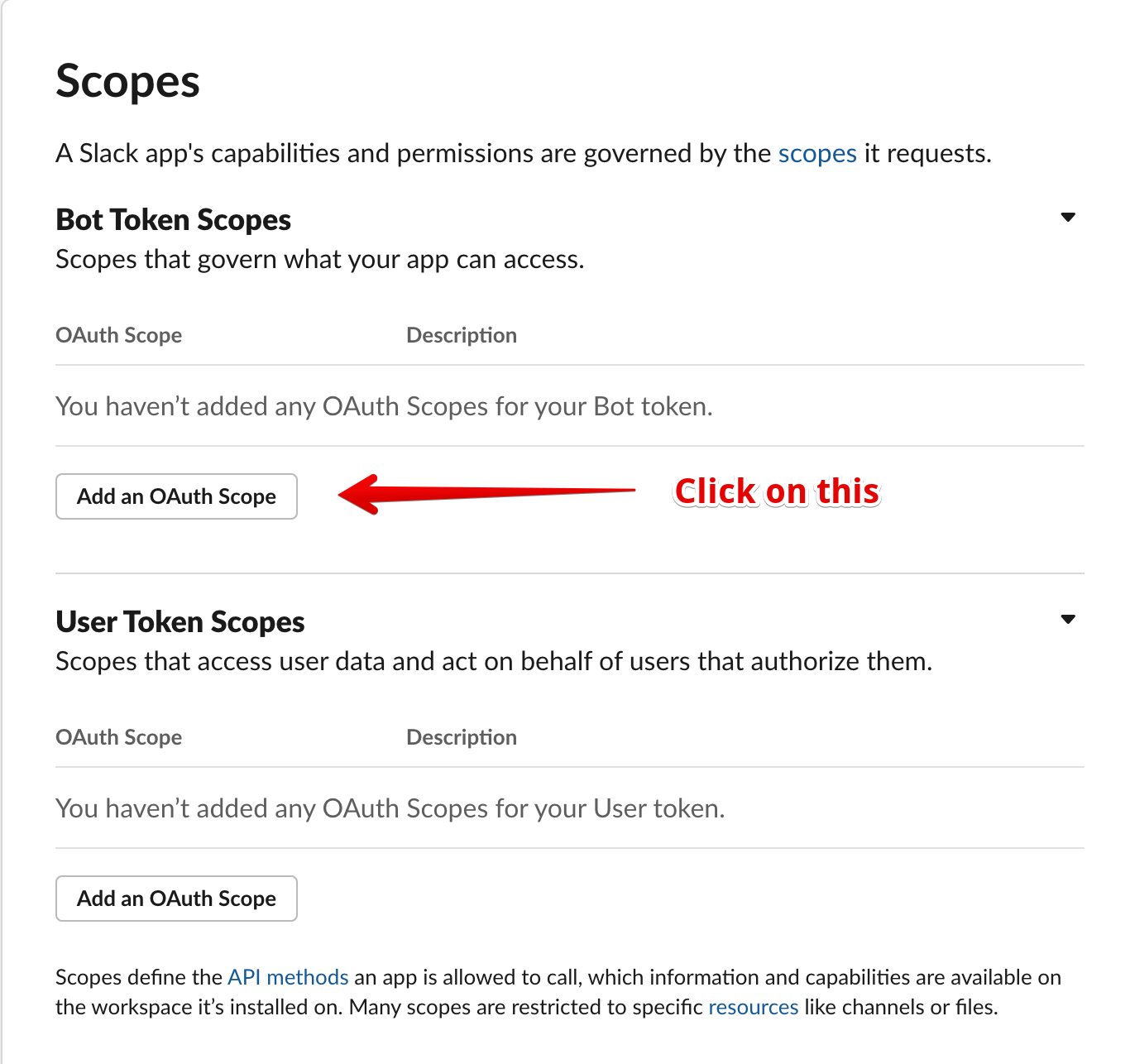 Scroll down to 'Scopes' and click on Add an OAuth Scope