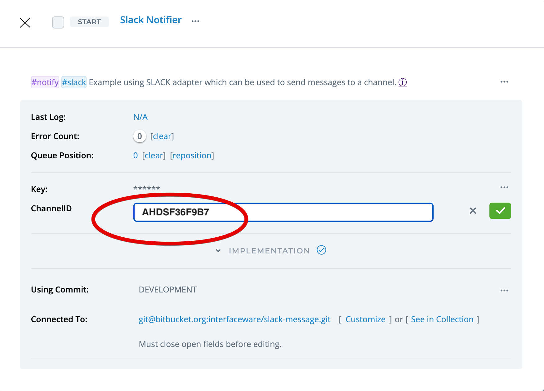 Copy the Channel ID into the ChannelID Custom Fields of the notifier component: