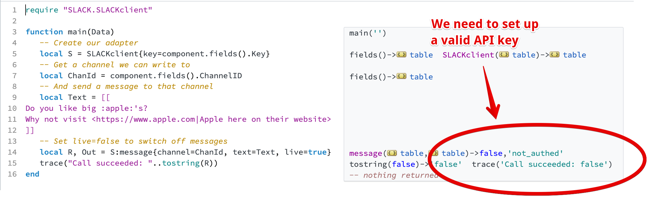 Paste the API key into the Slack Notifier card view
