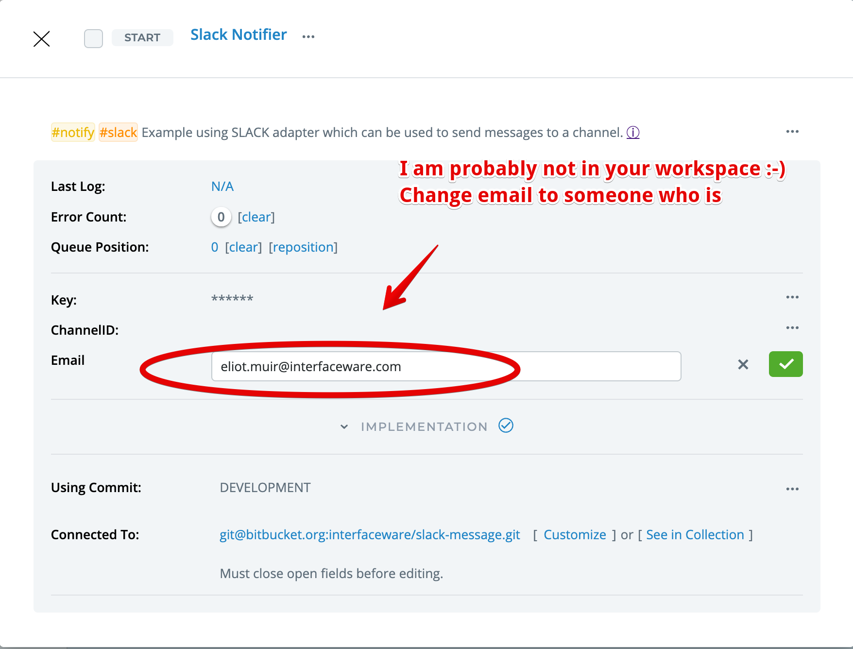 Change the email address to some one who you know is in your Slack Workspace