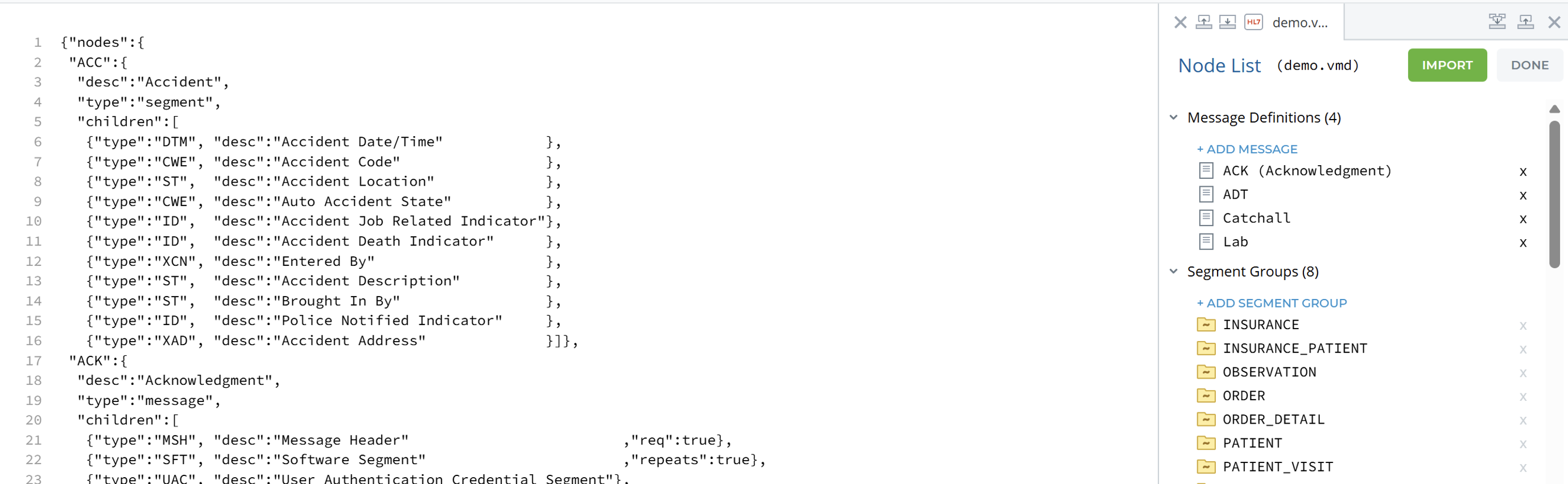 Immediately after importing it, you might see how the source immediately updates to the JSON format. Remove the ACK message definition (or whichever dummy change you made) after importing it.