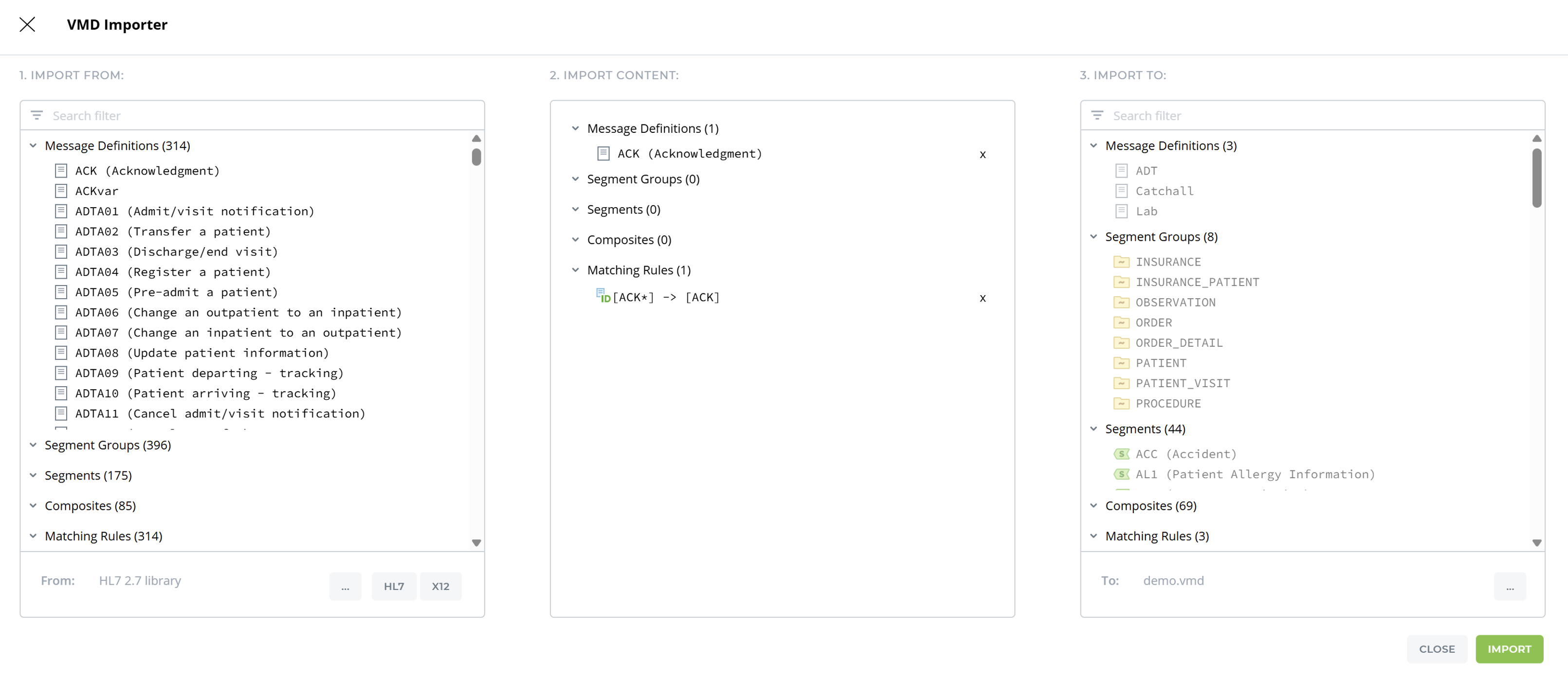 To import a new message definition: